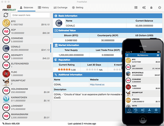 FreeWallet Desktop runs on Windows, Macintosh, and Linux.